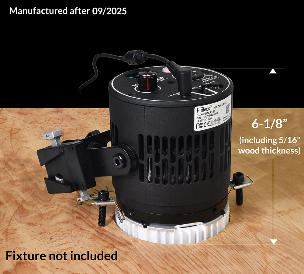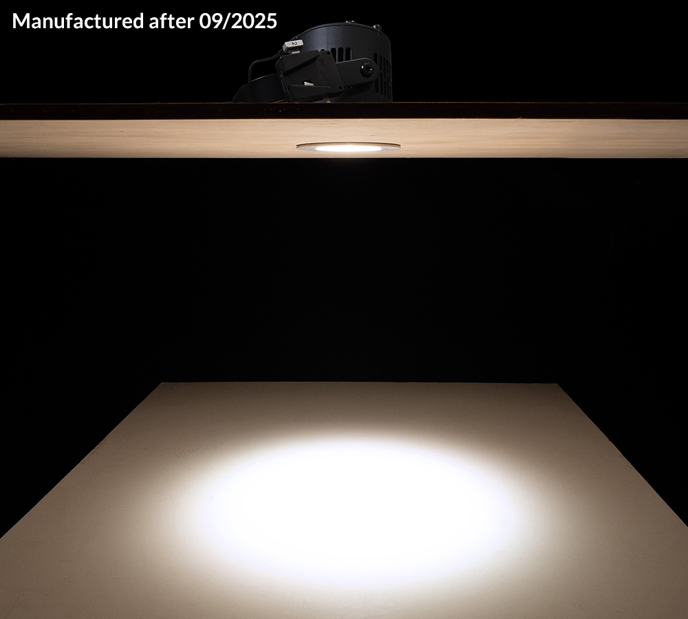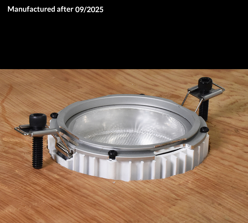 The Recessed Lens accessory enables the easy installation of the fixture as a recessed ceiling fixture. Clamps hold the recessed trim in place and support the weight of the mounted fixture. The accessory is designed for use on thin plywood, down to 1/5", with included blocks to add the necessary tension. The Narrow version of the Recessed Lens focuses the fixture’s output into a concentrated beam. A Wide version is also available.