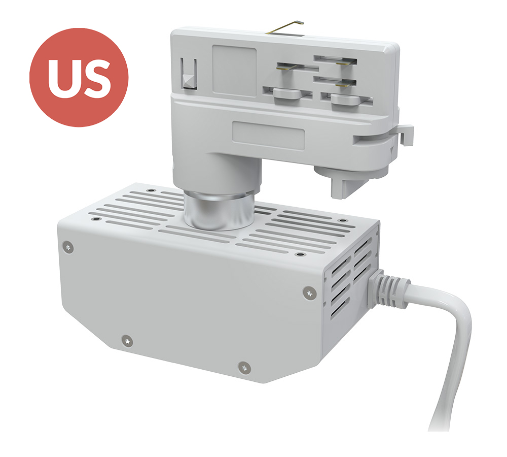 This external power supply is compatible with P3 fixtures and connects to a One track. With this accessory, a P3 fixture is easily converted into a track light.